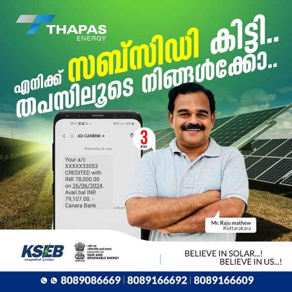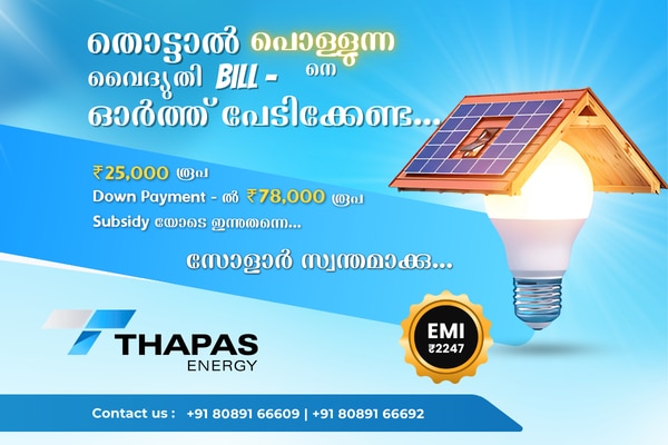 തപസ് എനർജിക്കൊപ്പം വീട്ടിൽ ഹൈ ക്വാളിറ്റിയുള്ള സോളാർ സ്ഥാപിക്കാം മാസംതോറും കറന്റ് ബില്ലിൽ നല്ലൊരു തുക...